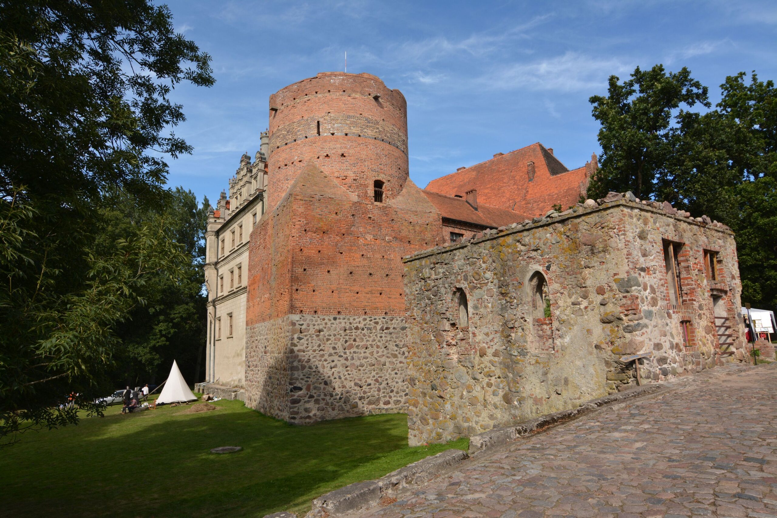 Już pierwszy rzut oka na ceglano‑kamienne mury zamku w Pęzinie pokazuje, że nie jest to typowa atrakcja odwiedzana w tłumie i na szybko między kolejnymi punktami wycieczki. Z drogi krajowej nr 10, prowadzącej między Szczecinem a Stargardem, zamek pojawia się niespodziewanie – jak niewielka, ale niezwykle wyraźna wyspa historii, odseparowana od codziennego ruchu samochodów i współczesnej zabudowy. Średniowieczne mury joannitów, renesansowe skrzydła mieszkalne i neogotyckie dobudówki tworzą wielowarstwową opowieść, którą można poznawać zarówno w czasie zwiedzania z przewodnikiem, jak i spokojnego spaceru po dziedzińcu czy nad brzegiem Krępieli. Zamek w Pęzinie nie przytłacza rozmiarem – raczej stopniowo odsłania kolejne detale, pozwalając skupić się na fakturze cegły, śladach dawnych przekształceń, widokach z murów i atmosferze dawnej rezydencji rycerskiej.